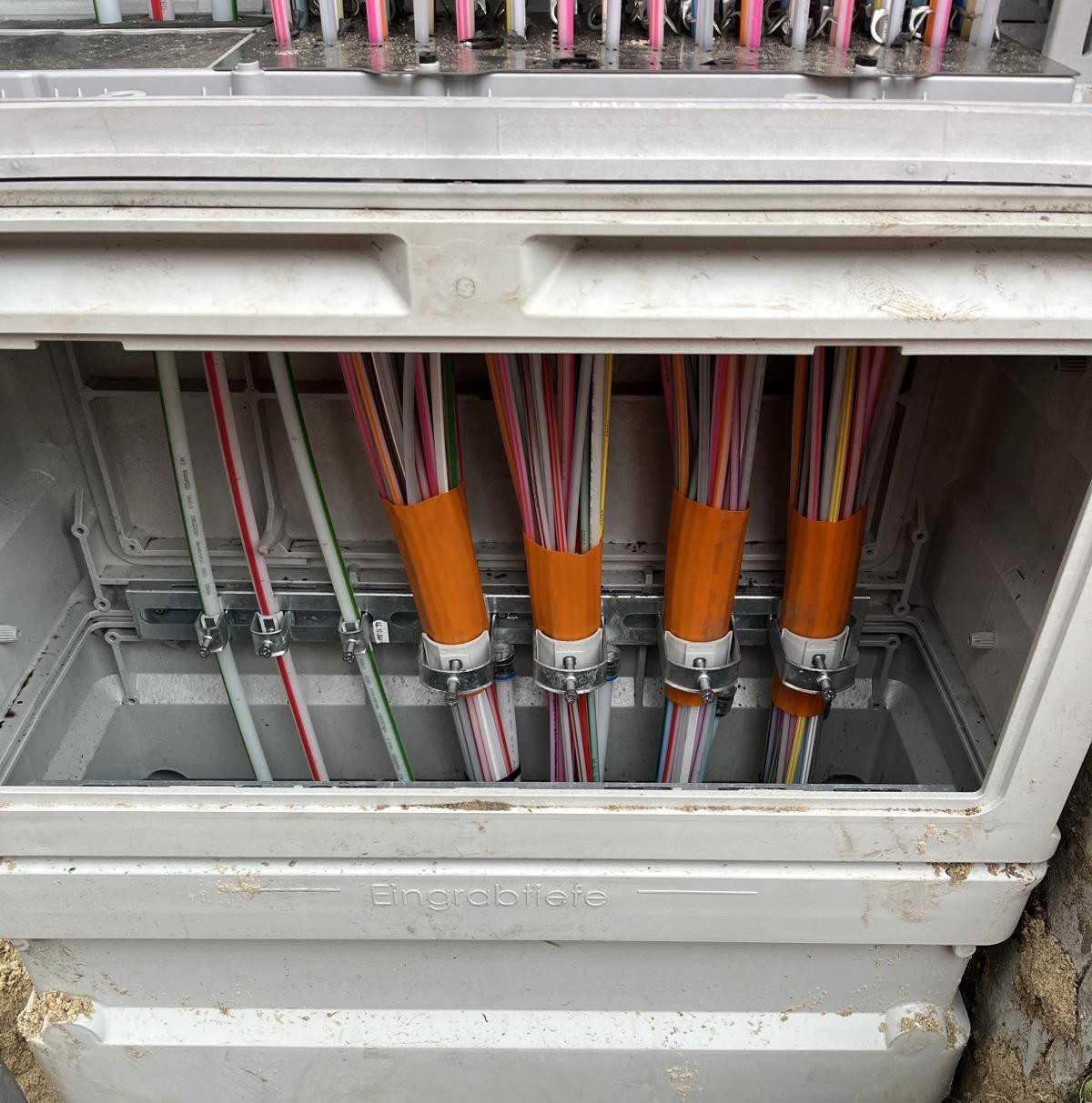 Hier haben wir insgesamt 150 Haushalte an das Glasfasernetz angeschlossen sowie etwa 7 km Hauptkabel verlegen dürfen.