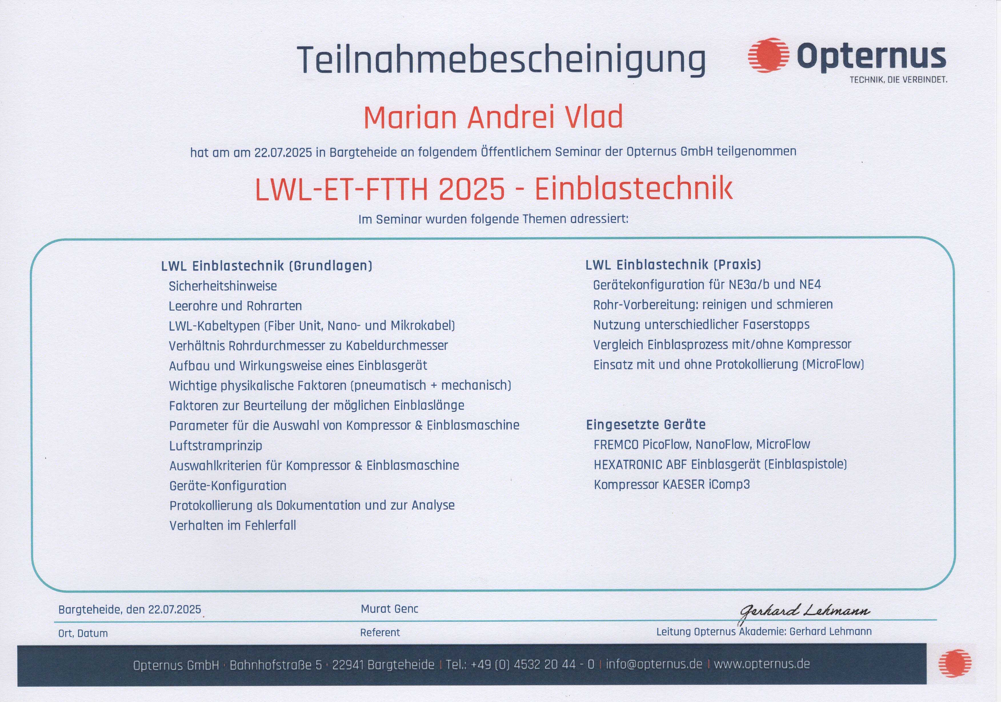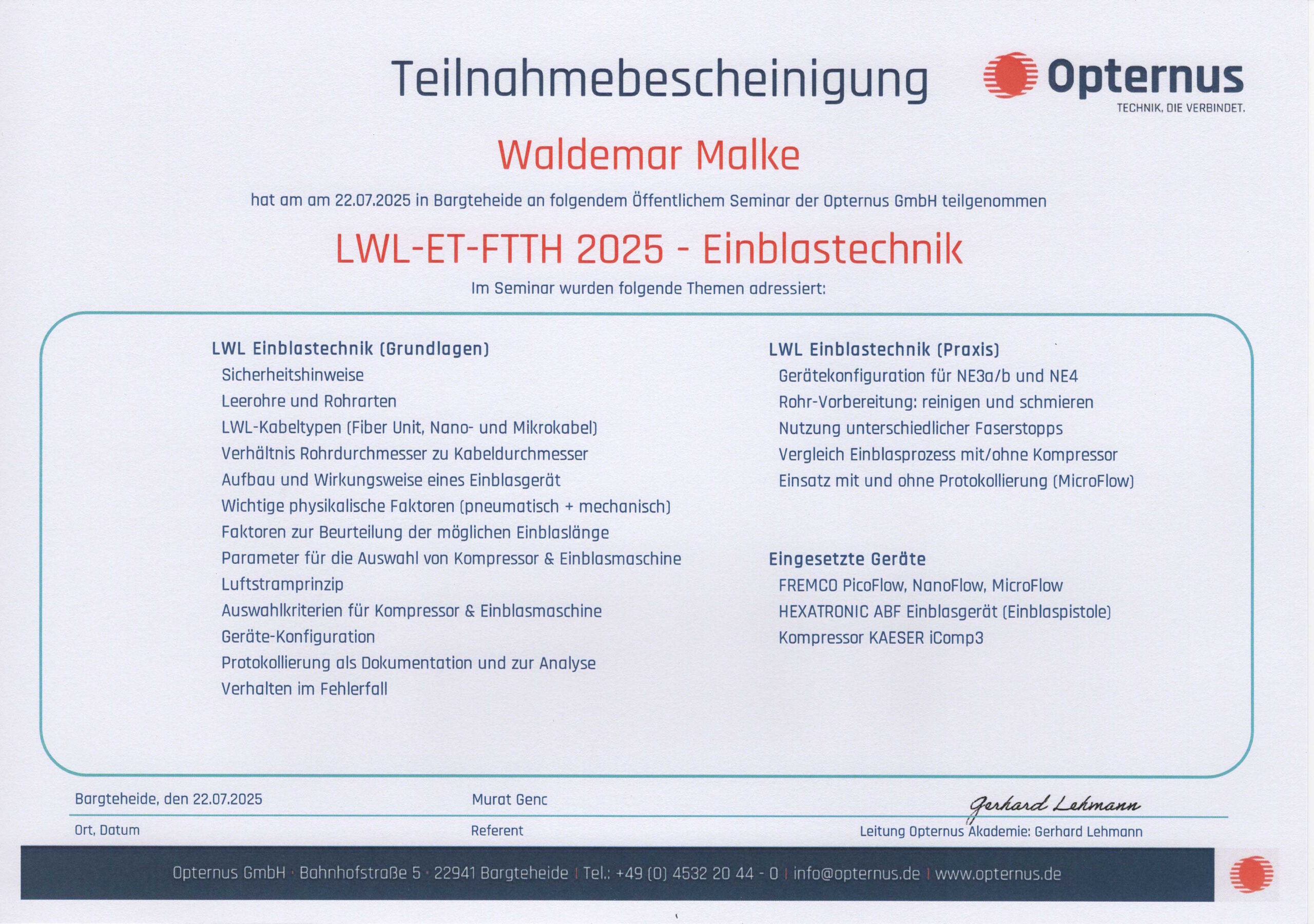 Verlegung des Hauptkabels über eine Strecke von 12 km und über 450 erfolgreich angeschlossene Haushalte an das Glasfasernetz.